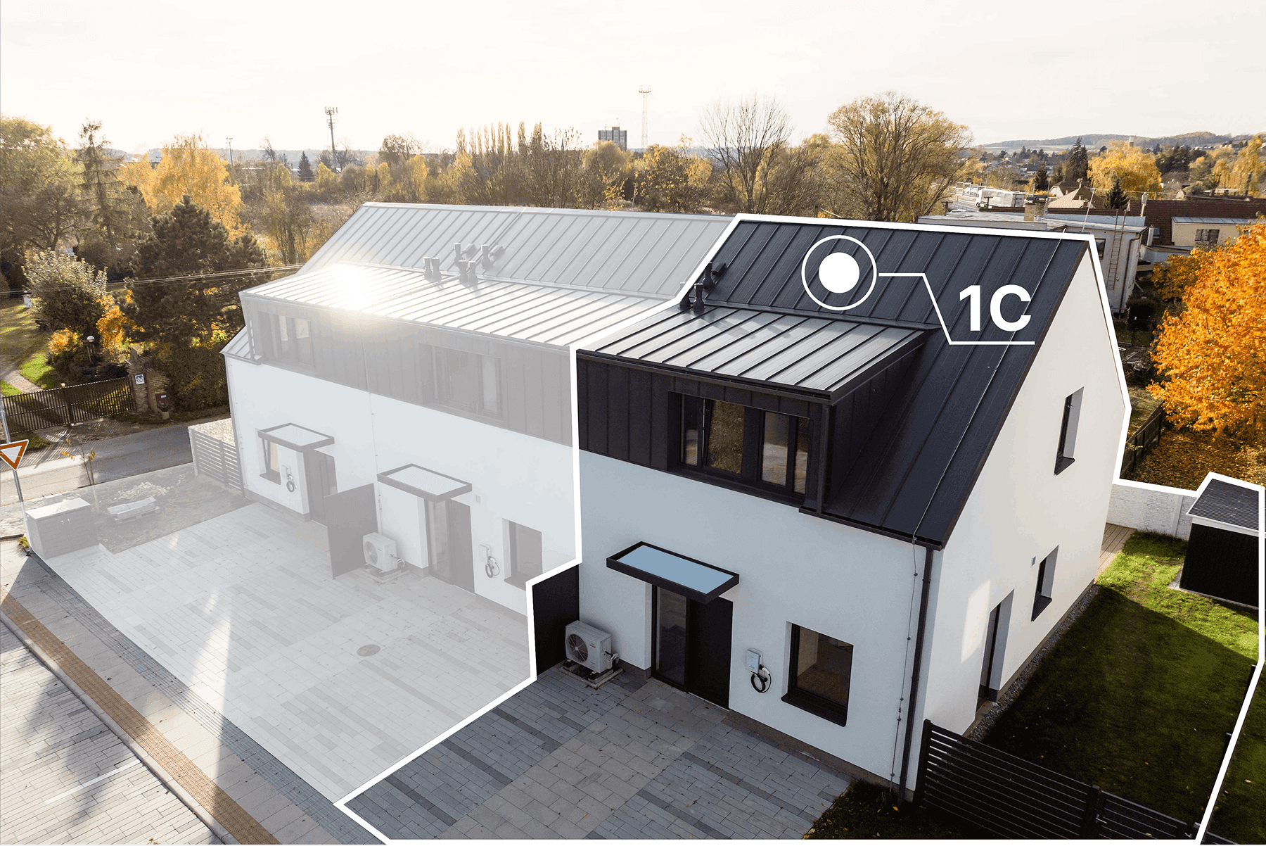 Tepelné čerpadlo, příprava pro fotovoltaiku a předokenní žaluzie, wallbox pro nabíjení elektromobilů.