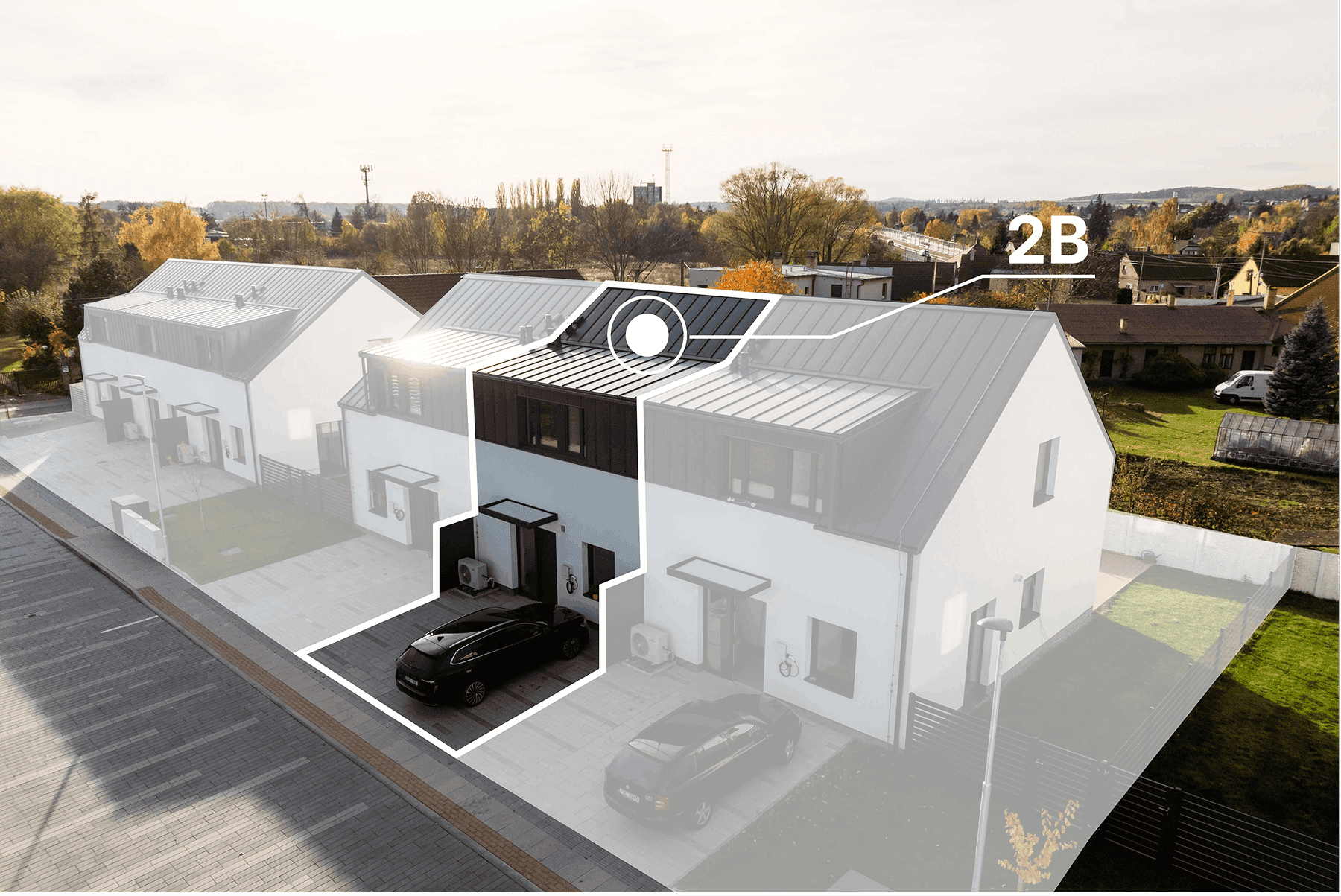 Tepelné čerpadlo, příprava pro fotovoltaiku a předokenní žaluzie, wallbox pro nabíjení elektromobilů.