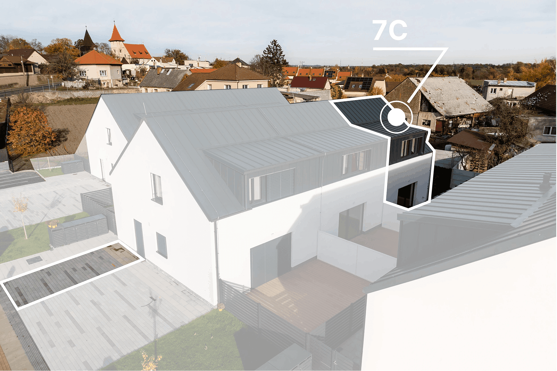 Orientační velikost pozemku 358 m2, podlahová plocha 114,5 m2, velikost terasy 38 m2.